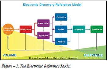 The Electronic Discovery Reference Model (EDRM) outlines a formal conceptual methodology for organizations to manage e-discovery (Creating Practical Resources to Improve E-Discovery & Information Governance). Use EDRM to discuss e-discovery technology with your general counsel and with vendors (Figure – 1).