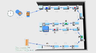 Figure 1 Factory Digital Twin At its core, factory simulation allows engineers and manufacturing planners to build a digital twin of the production system. Each machine, work bench and workstation is represented as an object with real operating parameters: cycle time, uptime, changeover duration, and availability. These digital assets are connected through logical and spatial relationships—how parts move, where buffers form, and when bottlenecks occur. Each product and each operator is also represented with their skills and shift pattern. Once modeled, the system can be simulated under a range of demand and staffing conditions. Specific failure cases such as equipment or process problems can be injected. The result is a much-improved understanding of throughput, utilization, and productivity long before the first operator arrives on the shop floor.