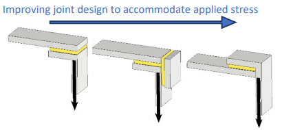 2. Design joint configuration so that the basic stress is primarily shear, tensile, or compressive with cleavage and peels minimized.