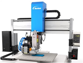 Robotics is the most obvious area where this ecosystem comes into play. The ability of a robotic work cell to rapidly adapt over multiple product generations enabled rapid improvements in important industries. Hot melt bonding in robotic work cells enables modern bezel-less device designs. Robotic hot melt bonding and sealing is essential for the assembly of the 7,104 cells in a common electric car. High-quality bonds help to achieve the many recharge cycles expected over the vehicle’s life. Non-contact jetting of discrete dots of adhesive simplifies the robot’s program and enhances its cycle speed and accuracy. Modern hot melt applicators are available that can cycle up to 1,600 times per second, or 1.6 kHz to support such advanced production. Modern robotic work cells integrate multiple subsystems, including advanced part handling systems, vision, and adhesive processing equipment.